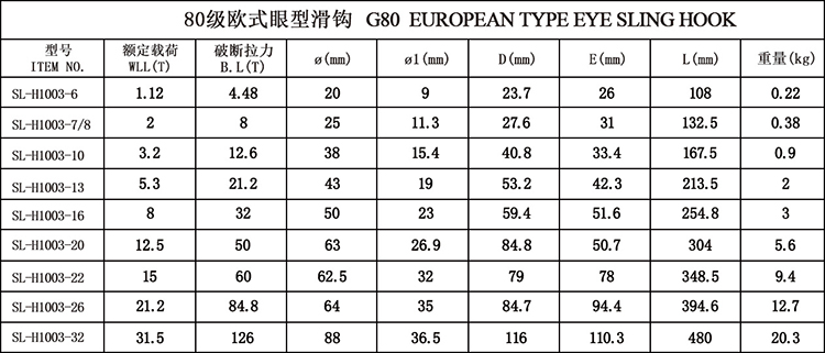 80级欧式眼型滑钩